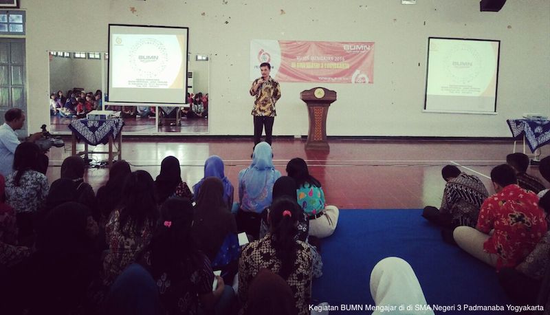 AKARPADINEWS. COM | PERUM Perhutani menggelar program Badan Usaha Milik Negara (BUMN) Mengajar 2016 di SMA Negeri 3 Padmanaba Yogyakarta dan SMA Negeri 3 Surakarta, Jawa Tengah. Kegiatan tersebut disambut positif pihak sekolah karena mendukung pembelajaran para siswa.