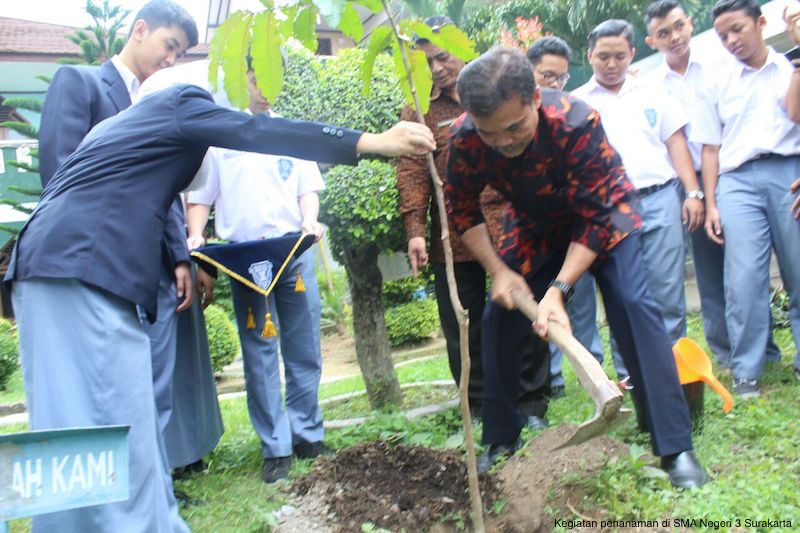 Sementara kegiatan BUMN Mengajar di SMA Negeri 3 Surakarta, yang digelar Kamis (27/7), mengangkat tema: Peran BUMN Sebagai Agen Pembangunan. Sebelum memulai kegiatan, Kepala Divisi Regional (Kadivre) Perhutani Jawa Tengah, Bambang Wuryanto, mengajak para siswa menanam bibit pohon Matoa di lingkungan sekolah, sekaligus memberikan 40 plances bibit pohon kayu putih secara simbolis yang ditanam Kepala Sekolah SMA Negeri 3 Surakarta, Makmur Sugeng.