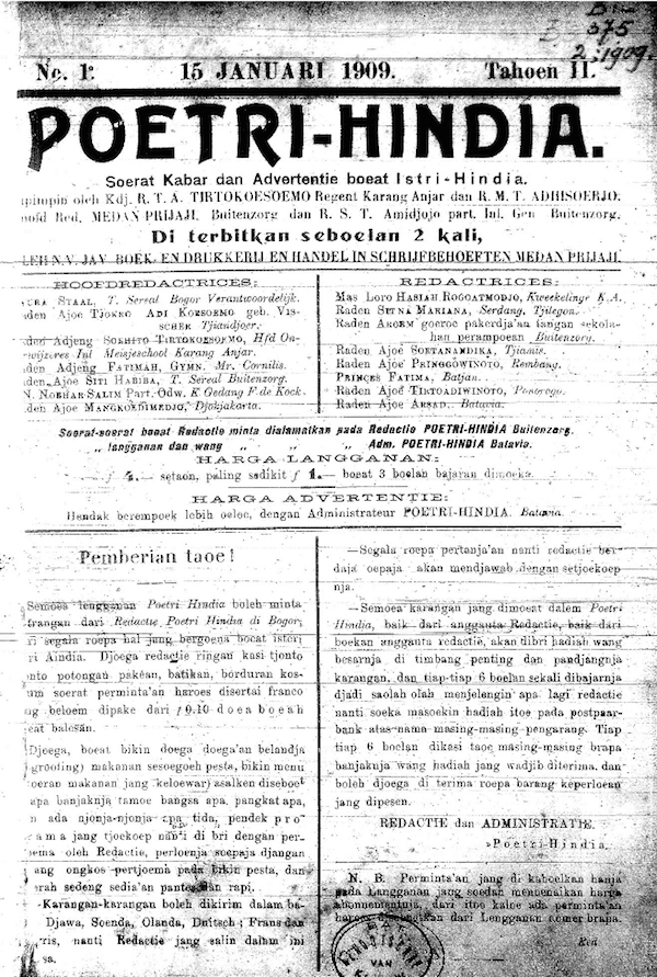 Inilah media massa pertama yang dikelola pribumi, yang banyak mengulas pemberitaan yang berseberangan dengan pemerintah kolonial. Ukurannya seperti buku atau jurnal, dicetak di percetakan Khong Tjeng Bie, Pancoran, Batavia. Berbagai isu diulas di surat kabar tersebut, mulai dari terkait mutasi pegawai, salinan Lembaran Negara, hukum, cerita bersambung, iklan, surat-surat, dan sebagainya.