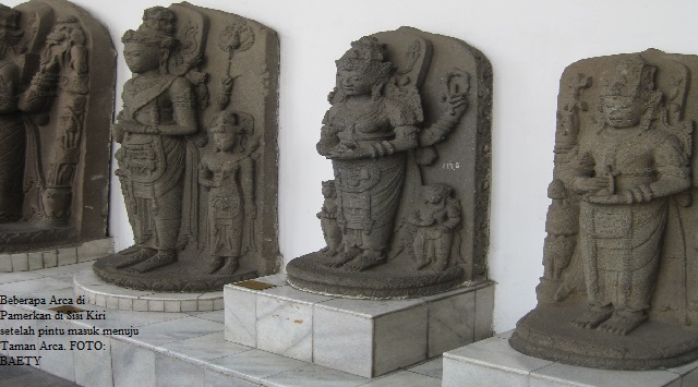 Selanjutnya, kita masuk ke bagian dalam, setelah melewati Arca besar dan kecil, kita langsung melihat sebuah taman. Tamannya beda dari taman kebanyakan, meskipun tetap dihiasi rumput hijau, taman ini dinamai Taman Arca. Sesuai dengan namanya, taman berumput hijau ini juga dipenuhi dengan arca-arca berbagai bentuk dan ukuran, serta lumpang-lumpang kuno yang terbuat dari batu andesit. Salah satu yang mencolok di taman arca yakni arca Nandiswara yang berbentuk lembu (sapi).