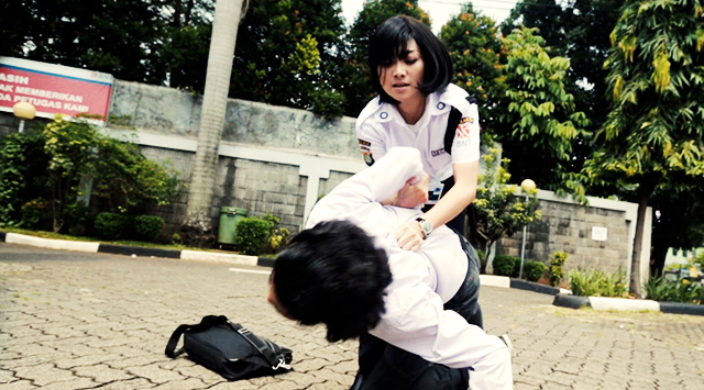 KRISNI di salah satu adegan laga RINDU SATPAM KITA |