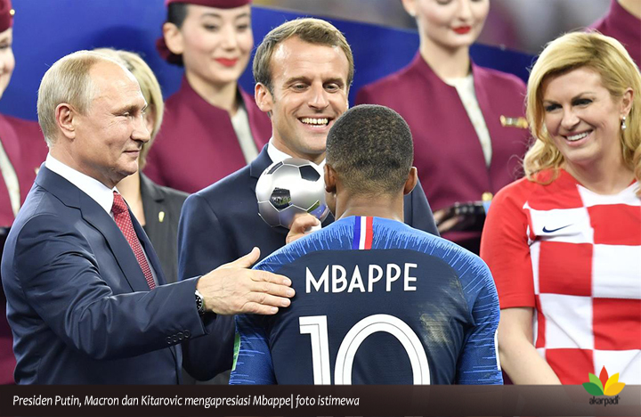 Tak keliru memberikan penghargaan kepada Mbeppe sebagai pemain muda berpotensi dan Luka Modric sebagai pemain terbaik dengan trophy emas. Karenanya, wajar juga, ketika pelatih Prancis Didier Deschamps, juga memberikan sambang kehormatan kepada Tim Kroasia.