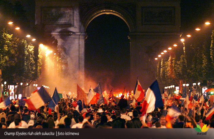 Kemenangan Prancis teresonansi ke negerinya. Champ Elysées riuh oleh sukacita menyambut kemenangan itu. Melebihi sukacita beberapa hari lalu, ketika khalayak memadati lokasi yang sama.