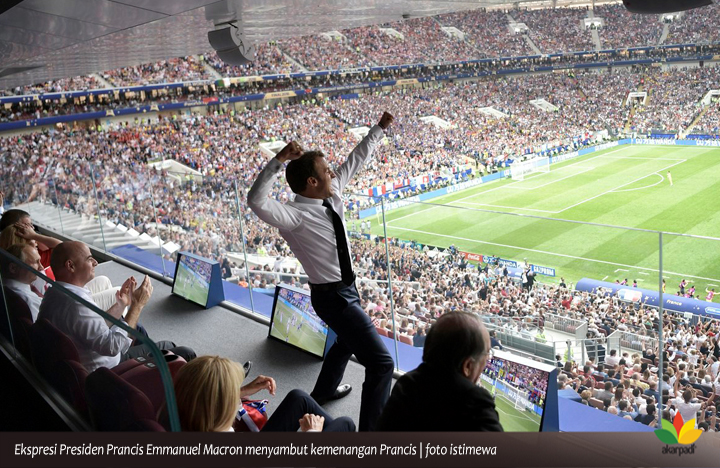 Ekspresi sukacita Prancis menampakkan pesonanya di pusat kota Paris itu. Sukacita yang sama juga terjadi di Lyon dan Bourdeux di Prancis Selatan. Tak hanya kepada Deschamps dan para pemain Tim Nasional Prancis, mereka juga bangga dengan Presiden Emmanuel Macron.