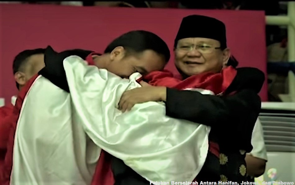 Ketika Hanifan memeluk Jokowi dan Prabowo, bahasa yang tertangkap secara nyata ialah keduanya tidak bermusuhan, seperti anggapan para pendukungnya di akar rumput. Jokowi dan Prabowo bisa berpelukan hangat tanpa ada tendensi politik yang memanas.