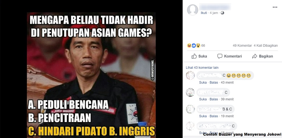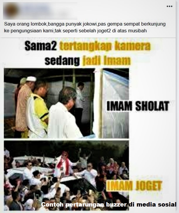 Kerap kali, akun-akun buzzer di media sosial-lah yang memberikan umpan lambung fitnah dan hoaks kepada masing-masing kubu pendukung. Akhirnya, mereka memiliki topik pembahasan yang berujung pada pertarungan kata dan komentar di media sosial. Tak jarang, pertarungan komentar itu berujung pada saling menghina.