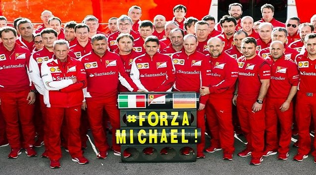 Karena kondisinya yang masih mencemaskan, maka dukungan tak hanya datang dari istrinya, Corinna, dua anaknya serta teman dekat saja, tetapi dukungan juga datang dari para fans di seluruh dunia hingga pihak Ferrari ataupun tim mercedes yang tak putus memberikan dukungan."Bertahun-tahun Michael bersama Ferrari, membuat dia menjadi salah satu dari kami. Ada (Schumacher) pernah memberi kami kegembiraan. Tapi kegembiraan yang paling besar saat ini yaitu saat bisa melihat Anda di Maranello (markas Ferrari) lagi, bersama dengan keluarga kedua yang Anda miliki," bunyi pernyataan resmi Ferrari yang dikutip dari Crash.