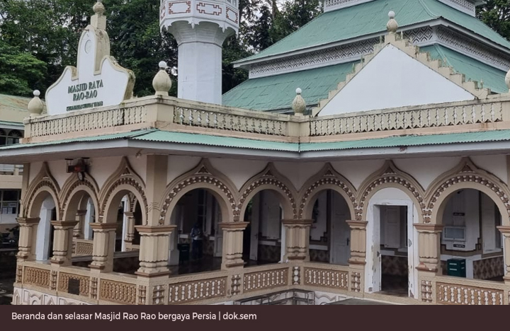 Citarasa Melayu - Minangkabau, nampak dan terasakan pada bagian atas bangunan disertai ornamen khas di setiap plang atap. Akan halnmya cita rasa Persia (bergaya Isfahan dan Syraz) segera terasa pada bentuk lengkung jendela utama pada sisi beranda depan dan samping, antara bangunan induk ruang ibadah dengan halaman. Akan halnya citarasa Eropa (Italia dan Belanda) terasakan pada empat sokoguru masjid ini.