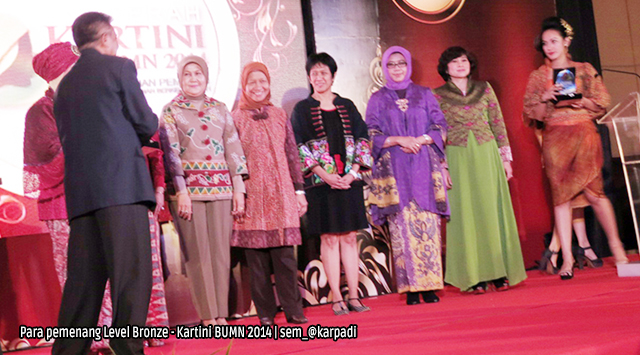 Pada malam itu, dinobatkan sejumlah perempuan yang memegang posisi setingkat di bawah direksi BUMN, yang memilih Mustaslimah dari Bank Mandiri sebagai Kartini BUMN 2014 (http://www.akarpadinews.com/read/ekonomi-bisnis/mustaslimah-kartini-bumn-2014). Tentang prestasi perempuan di lingkungan BUMN, itu Menteri Linda Sari menyatakan, "Ini terobosan Pak Dahlan (Menteri BUMN) yang patut dibanggakan, karena sudah ikut menjadi pihak yang merealisasikan program pemerintah dalam memberdayakan kalangan perempuan."