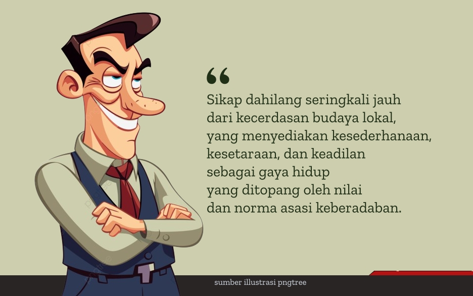 Sikap dahilang seringkali jauh dari kecerdasan budaya lokal, yang menyediakan kesederhanaan, kesetaraan, dan keadilan sebagai gaya hidup yang ditopang oleh nilai dan norma asasi keberadaban.