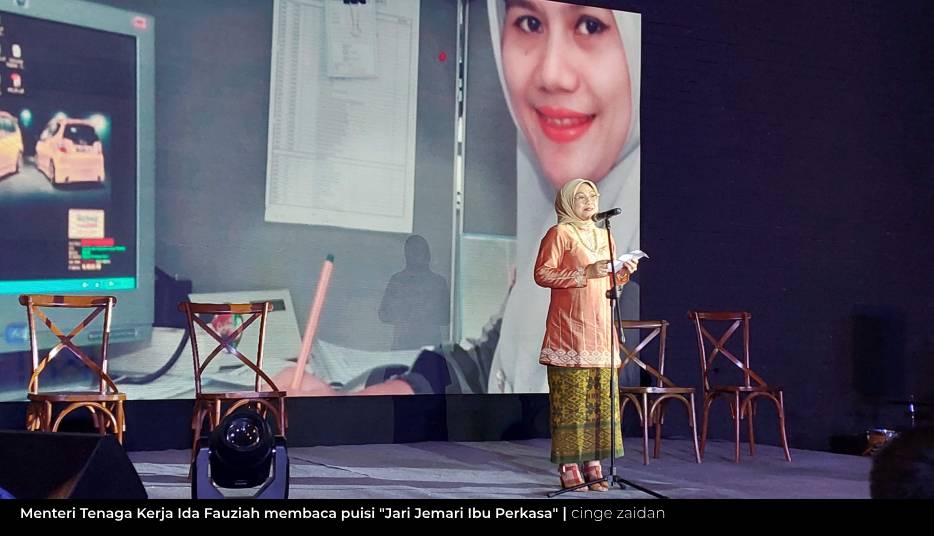 Anies dan seluruh yang hadir menyaksikan dengan seksama Ida Fauziah naik ke atas panggung dan membaca puisi bertajuk Jari Jemari Ibu Perkasa. Puisi ini mengekspresikan peran para ibu, pekerja di lingkungan industri manufaktur.