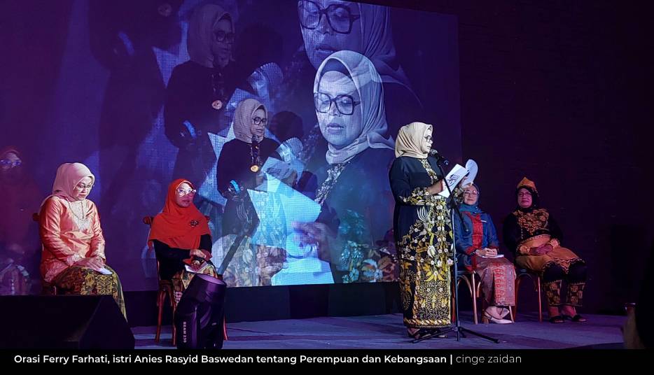 Selepas itu, Fery Farhati naik ke panggung. Tidak untuk membaca puisi. Melainkan, menyampaikan orasi yang asasi tentang peran ibu dalam prosdes perjuangan perubahan bangsa, mewujudkan Indonesia adil makmur untuk semua, sesuai Visi AMIN.