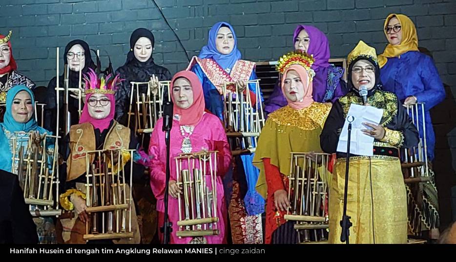 Dalam suasana demikian, salah seorang Pendiri dan Pembina Relawan Manies, Hanifah Husein meletakkan tiga jenis angklung dari tangannya. Ia mengucapkan salam dan menyapa hadirin, lantas lantang bersuara: "Ya Ilahi, di antara indah suara angklung mengiring suara batin memuja Mu. Engkau lah hanya, Yang Maha Kuasa dan Pemilik segala Kuasa. Penentu segala kebaikan dan sumber segala kebenaran. Sumber segala kesejahteraan dan kebahagiaan semesta. Engkau Maha tahu, Maha mendengar, Maha melihat. Engkaulah hanya, sumber segala rahman dan rahim. Allah Maha mengabulkan segala asa."