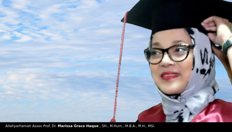 Allahyarhamah Assoc Prof., Dr. Marissa Grace Haque., SH., M.Hum., M.B.A., M.H., M.Si orang baik yang dalam pandangan saya, pada usia matangnya mencapai mur'ah sebagai hairun nisaa'. Ia pulang ke haribaan Allah, melintasi gerbang hunsul khatimah membawa hakikat hairun naas an faa'uhum lin naas yang terus melekat bersama ilmunya yang bermanfaat. . Tentu juga melalui amal jariah dan do'a anak-anaknya yang salehah. Ia menjadi sosok teladan bagi banyak insan yang mau bersyukur dan berdzikir. Dari jauh, saya berdo'a: allahummaghfirlaha warhamha wa'afihi wa'fuanha wa akrim nuzuulaha wa wasi' madhalaha.. Ia matahari dan matahati yang tak pernah redup bagi keluarganya.. InsyaAllah.. |