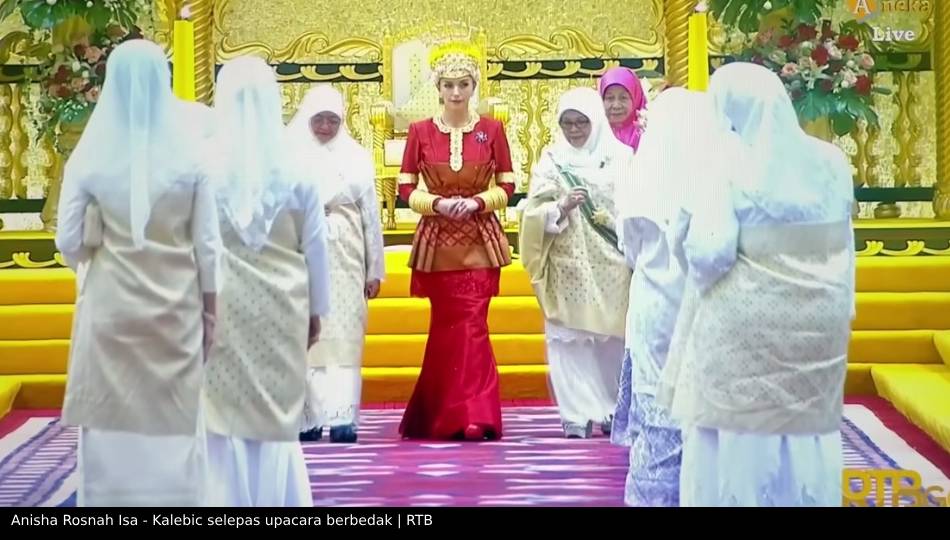 Anisha, sebagaimana halnya Pangeran Mateen, nampak bergembira dan mengekspresikan kebahagiaannya. Ketampanan dan keanggunan mereka, sudah nampak sejak awal prosesi pernikahan. Anisha Rosnah Adam Isa Kalebic akan nampak anggun dengan balutan baju kurung tenunan Brunei yang rumit. Ketika mengkahatam bacaan Qur'annya, Anisha sudah menampakkan keanggunannya.