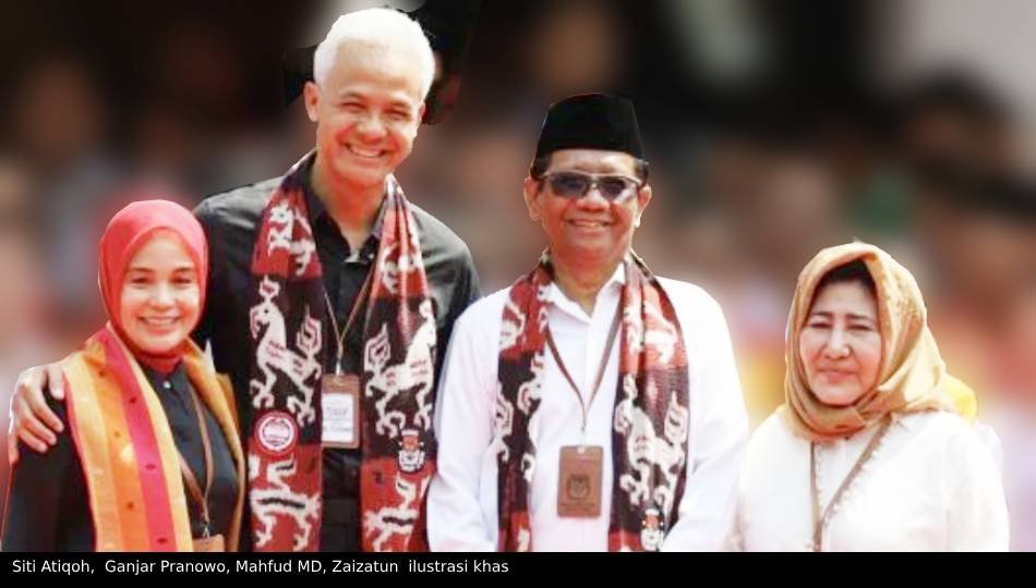 Kini, menjelang Pemilihan Presiden - Wakil Presiden 2024 - 2029, kita berpeluang menilai empat perempuan dengan pesona persona ibu, masing-masing Ferry Farhati Ganis (istri Anies Rasyid Baswedan), Siti Atiqoh Suprianti (istri Ganjar Pranowo), Rustini Murtadho (istri Muhaimin Iskandar), dan Zaizatun Nihayati (istri Mahfud MD).