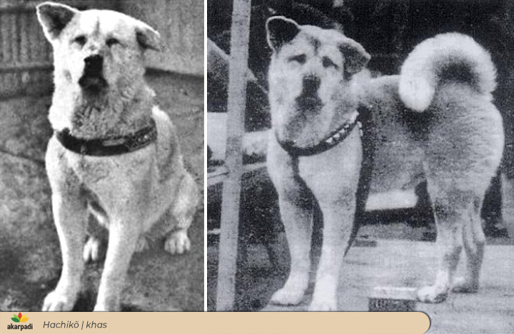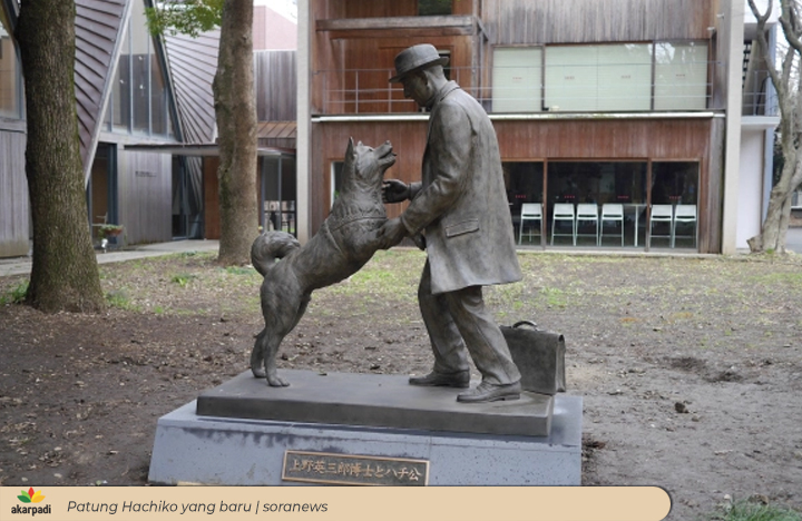 Kisah anjing berwatak baik dan setia kita dapatkan di Jepang. Hachikõ, namanya. Anjing legendaris yang patungnya dibangun dan diresmikan secara istimewa di dekat stasiun Shibuya, Tokyo, Jepang.