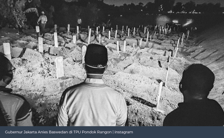 Semalam, saya teringat mendiang istri saya, ketika melihat akun instagram Anies Baswedan, gubernur Jakarta yang sedang meninjau lokasi pemakaman korban nanomonster Covid-19 hingga larut malam.