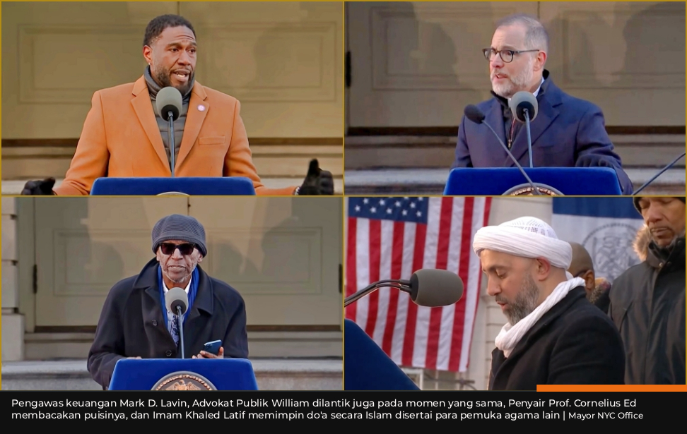 Zohran Mamdani sudah memasuki hari keempat tugas dan tanggung jawabnya sebagai Walikota NEW York City (NYC). Mamdani didampingi Rama Duaji, istrinya yang memegang Al Qur'an -- koleksi Perpustakaan Schomburg dan koleksi kakeknya, angkat sumpah secara resmi lepas tengah malam di peron stasiun bawah tanah dan di beranda - pelataran Balai Kota kota New York, Kamis (1 Januari 2026).