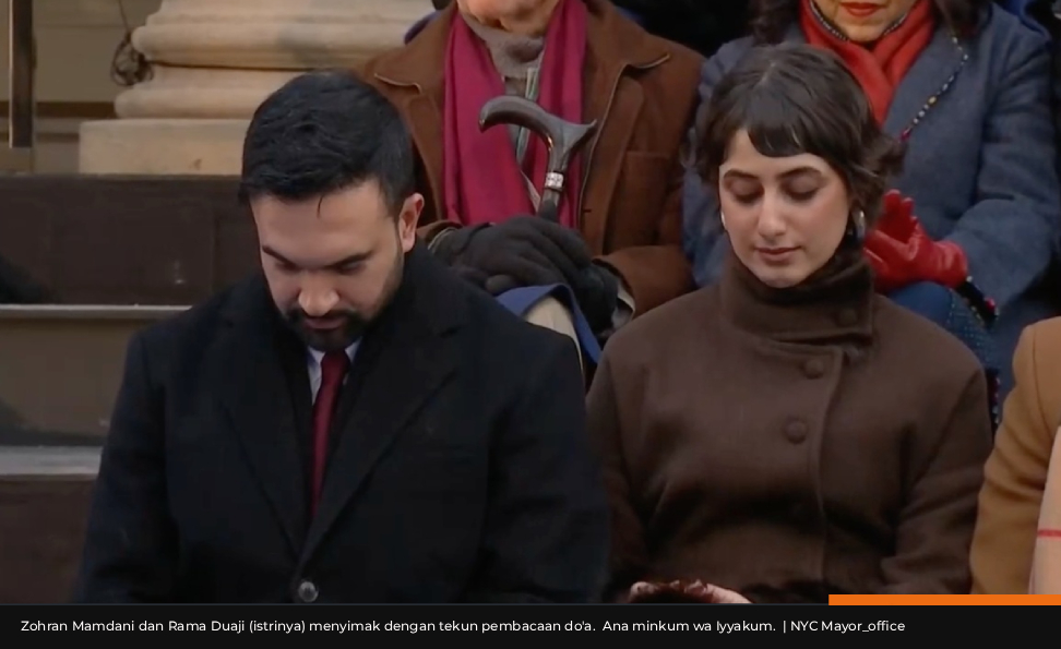 Zohran Mamdani (kelahiran Kampala - Uganda, 18/10/1991) meletakkan telapak tangannya di atas dua Al Qur'an dalam genggaman istrinya, Rama Duaji, seraya mengikuti ucapan Jaksa wilayah New York Letitia James yang melantiknya di tangga stasiun subway. Hal yang sama dilakukannya, ketika ia mengikuti ucapan Senator Independen AS dari Vermont, Bernie Sander yang melantiknya pada upacara di beranda Balai Kota. Al Qur'an itu, masing-masing merupakan koleksi Perpustakaan Sejarah Afro-Latin Arturo Schomburg dan milik kakeknya. (Artikel Terkait : Dengan Al Qur'an Koleksi Schomburg dan Kakeknya Mamdani Angkat Sumpah)