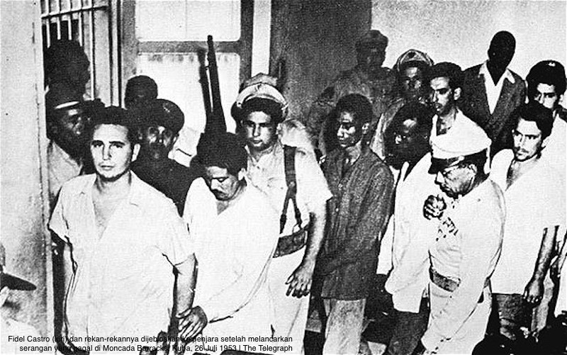 Dalam beberapa hari, operasi penangkapan pun dilakukan. Beberapa di antara pendukung Fidel dieksekusi mati. Fidel sendiri ditangkap dan dipenjara. Pemerintah juga menuduh keterlibatan sejumlah politisi Ortodoxo dan PSP. Sebanyak 122 orang dijadikan terdakwa, diadili pada 21 September di Pengadilan Santiago. Dalam persidangan yang digelar 16 Oktober 1953 dijatuhi hukuman 15 tahun penjara. Selama di penjara, Fidel tak menghentikan aktivitas politiknya, dia membentuk "Gerakan 26 Juli" (Movimento 26 de Julio) atau dikenal MR-26-7.
