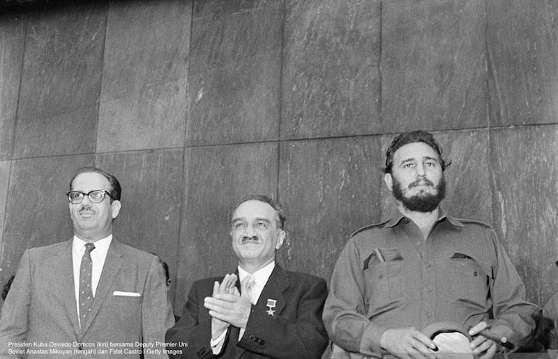 Pada tahun 1960, ketika Perang Dingin berkecamuk antara dua negara adidaya: Amerika Serikat dengan demokrasi liberal dan kapitalis, dan Uni Soviet (USSR), yang mengadopsi sosialis Marxis-Leninis yang diperintah oleh Partai Komunis, Fidel Castro mengekspresikan kebenciannya kepada AS. Dia berbagi pandangan ideologi yang berkiblat ke Uni Soviet dan membangun hubungan dengan beberapa negara penganut Marxis-Leninis. Saat bertemu dengan Deputi Pertama Premier Uni Soviet, Anastas Mikoyan, Fidel setuju untuk memberikan Uni Soviet gula, buah, serat, dan kulit, sebagai imbalan untuk suplai minyak mentah, pupuk, barang-barang industri, dan pinjaman US$100 juta.