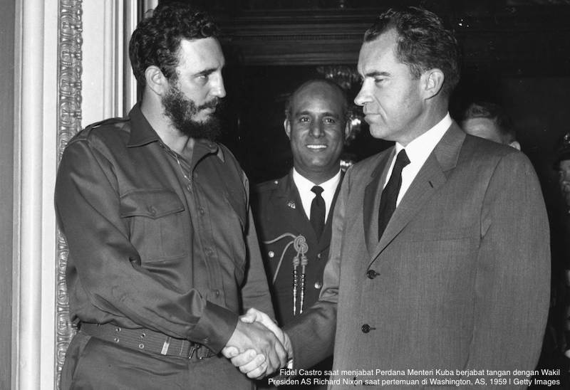 16 Februari 1959, Fidel dilantik sebagai Perdana Menteri Kuba. Ia mengunjungi AS dan bertemu dengan Wakil Presiden AS, Richard Nixon. Pertemuan itu tidak memberikan kesan positif bagi Fidel Castro. Dia tidak menyukai Nixon. Lalu, Fidel bertandang ke Kanada, Trinidad , Brasil, Uruguay, dan Argentina. Dia juga menghadiri konferensi ekonomi di Buenos Aires, dan berhasil mengusulkan pinjaman dana sebesar US$30 miliar yang didanai dari "Marshall Plan" untuk Amerika Latin.