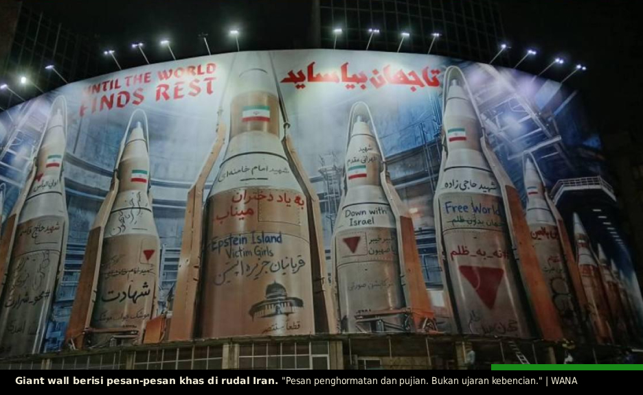 Dalam 'pesan rudal Iran,' badan rudal telah diubah menjadi podium untuk menghormati dan memuji para pembawa perdamaian, menghormati jurnalis yang gugur, dan bersimpati kepada para korban kejahatan moral di Barat (termasuk para korban Pulau Epstein).