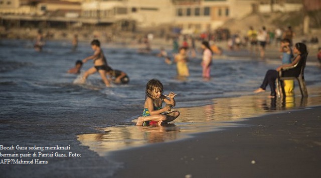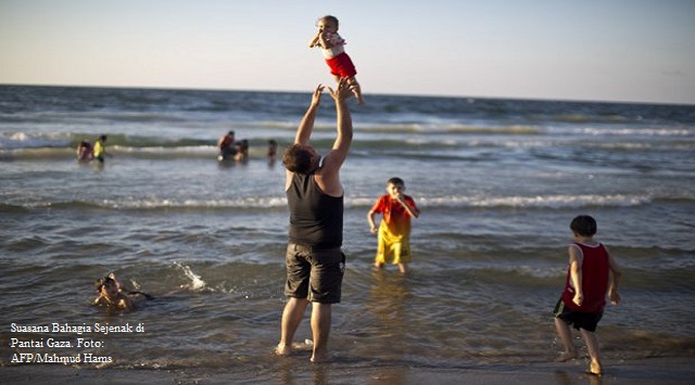 GAZA, AKARPADINEWS.Com - Seorang koresponden fotografer AFP merekam beberapa momen peperangan antara kubu Israel dan Palestina selama 50 hari di jalur Gaza. Kerusakan dan kematian serta pemakaman menjadi potret sehari-hari Tetapi, ada yang berbeda ketika kameranya juga menangkap momen kebahagian di sebuah pantai di Gaza.