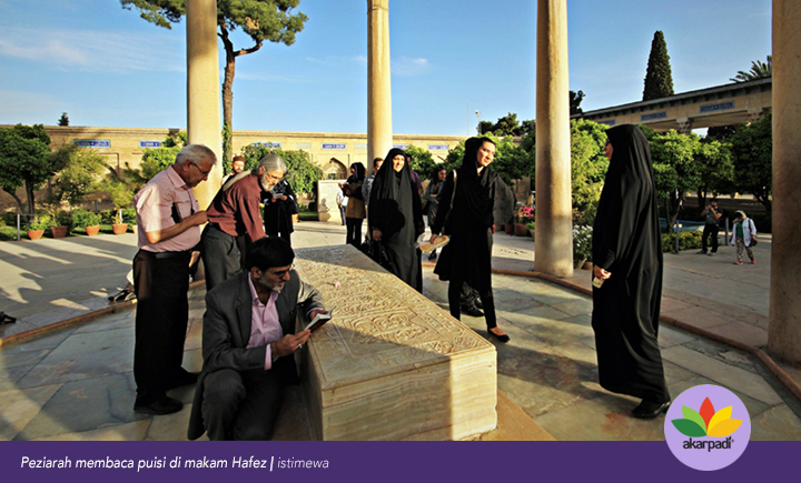 Berkunjunglah ke Iran. Pergilah ke Shiraz. Kunjungi makam penyair sohor abad ke 14, Shams-ud-din Muhammad Hafez (1320-1389).