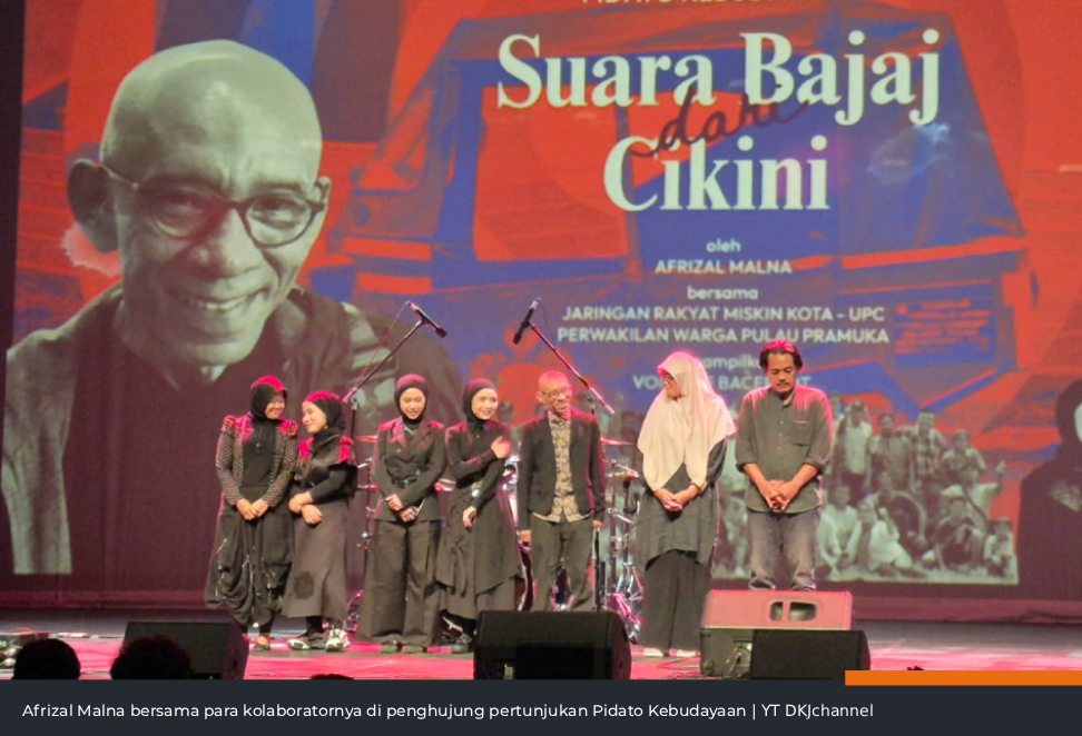 Dewan Kesenian Jakarta (DKJ) menggelar acara tahunannya, Pidato Kebudayaan bertajuk "Global City >> Suara Bajaj dari Cikini," di Graha Bhakti Budaya - Pusat Kesenian Jakarta Taman Ismail Marzuki - PKJ TIM (Senin, 10/11/25). Penyajinya adalah Afrizal Malna, maestro seni kata anggota Akademi Jakarta (AJ, 2020 -) dan Ketua Komite Teater DKJ (2016-2019)