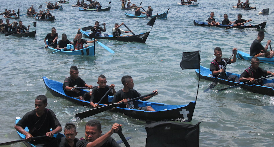 Ribuan orang dengan perahu motor mengiringi sampan yang membawa arca Tuhan Meninu Tuan Ma hingga ritual puncak dalam prosesi laut. Mereka datang dari berbagai pulau di Flores Timur, melintasi laut untuk berjumpa dan mengarak sang Ratu.