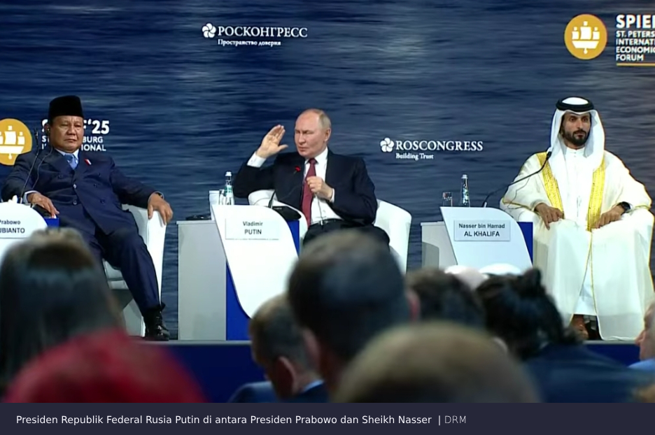 Presiden Putin mengapresiasi keempat mitranya dari lima kawasan dunia: Prabowo Subianto, Sheikh Nasser, Ding Xuexiang, dan Paul Mashatile, dan seluruh partisipan yang serius dan disiplin menyimak. Dia senang, perwakilan dari 140 negara dan wilayah telah bergabung dalam dialog penting ini.