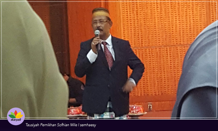 Pada saatnya, Sofhian yang bermisai berdiri di depan khalayak, memberikan nasihat perkawinan. Kedua mempelai, beserta kedua orang tua dan keluarga masing-masing, serta hadirin menyimak tausiyah yang nampak arif tetapi jelas, tegas, dan kuat sebagai bekal hidup kedua mempelai.