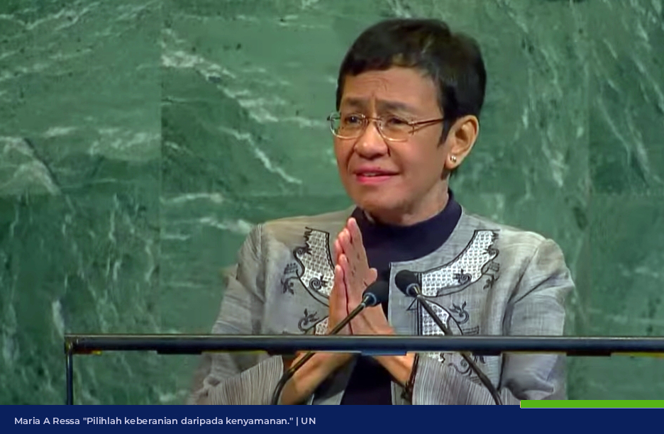Cepat dan tepat Ressa menyatakan, ".. tantangannya adalah membangun kembali PBB untuk saat ini, untuk momen ini, ketika kekuatan serupa yang menyebabkan kekejaman 80 tahun yang lalu, kini melonjak melalui platform digital, yang secara licik memanipulasi kita demi kekuasaan dan keuntungan."