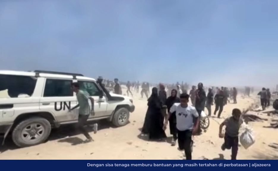 Ahad (19/7/25) konvoi bantuan kemanusiaan dan pangan WFP serdadu zionis Israel menyerang dan membantai warga Gaza yang 'memburu' truk-truk yang membawa bantuan kemanusiaan untuk warga Gaza.