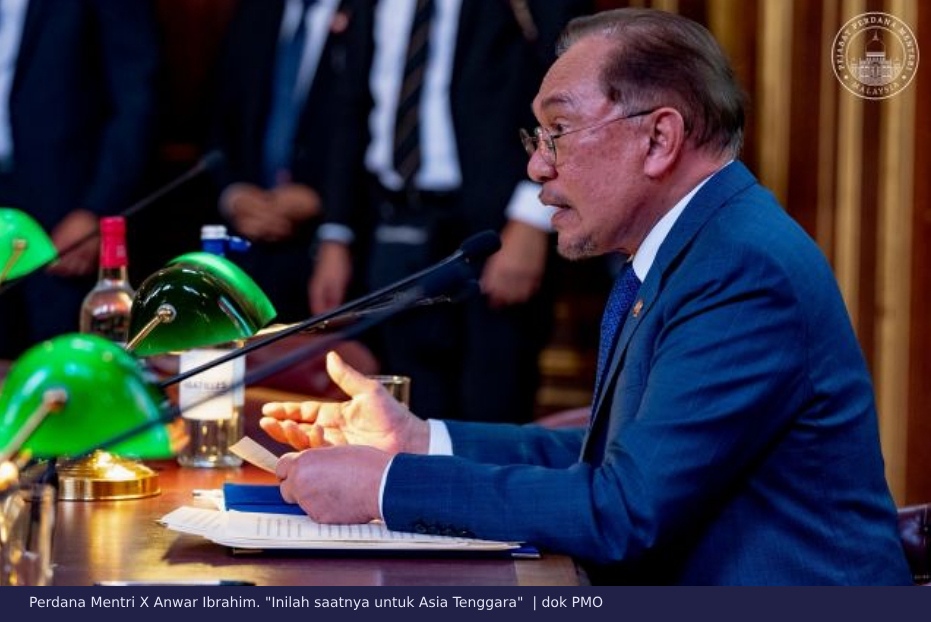 Kala berbicara tentang geopolitik, Anwar mengemukakan, Asia Tenggara telah dilihat melalui lensa pinjaman sebagai sayap dalam persaingan kekuatan besar, rantai pasokan, zona pertikaian antara kekuatan yang lebih besar dari dirinya sendiri.