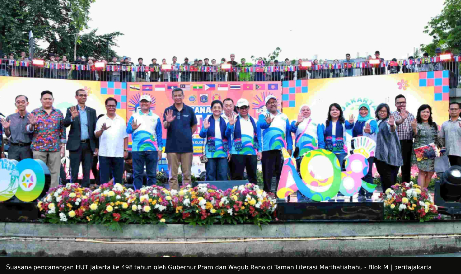 Pencanangan rangkaian hari ulang tahun Jakarta ke-498 oleh Gubernur DKI Jakarta, Pramono Anung (Pram), bersama Wakil Gubernur DKI Jakarta, Rano Karno (Rano), di Taman Literasi Martha Christina Tiahahu, Blok M, Kebayoran Baru, Jakarta Selatan (Sabtu - 24/5/25), menarik untuk dicatat.